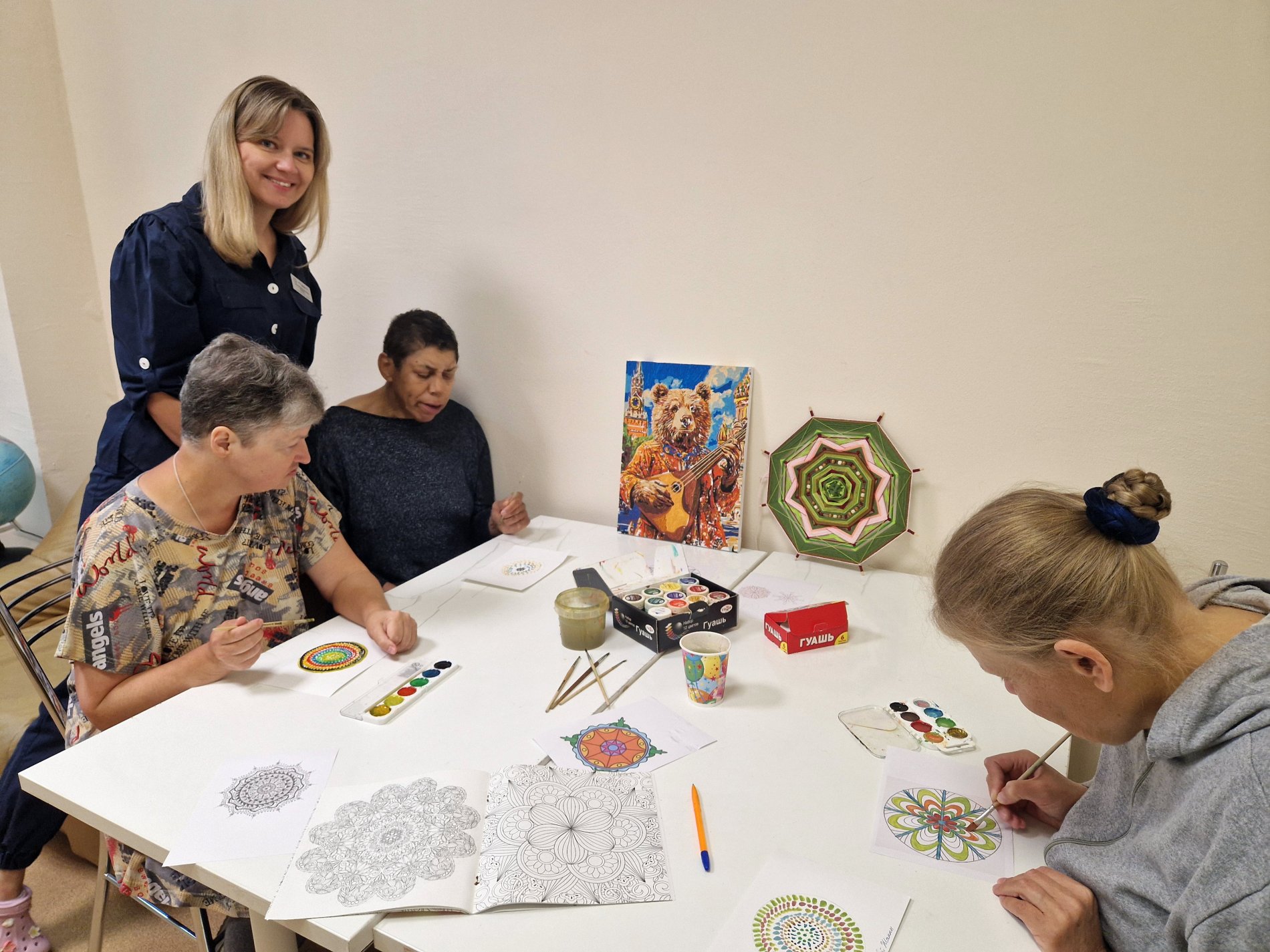 В нашем социальном доме прошло особенное занятие — проект мандалатерапии "Круг души". Участницы рисовали мандалы из точек, создавая уникальные узоры, которые помогли им погрузиться в внутренний мир и найти гармонию.