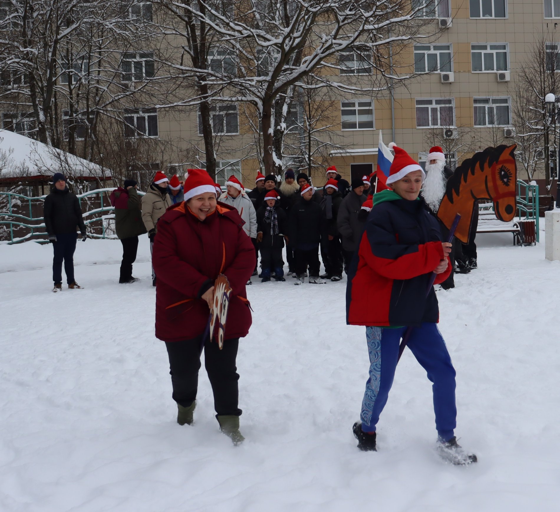 Зимняя площадка стала ареной для увлекательных соревнований. Эстафеты «Снежные комья», «Резвые лошадки», «Быстрые ватрушки» и перетаскивание каната вместе с Дедом Морозом подняли настроение участникам.