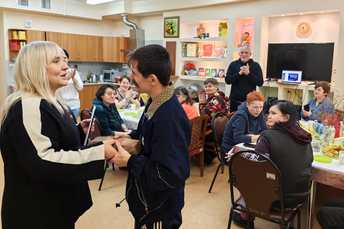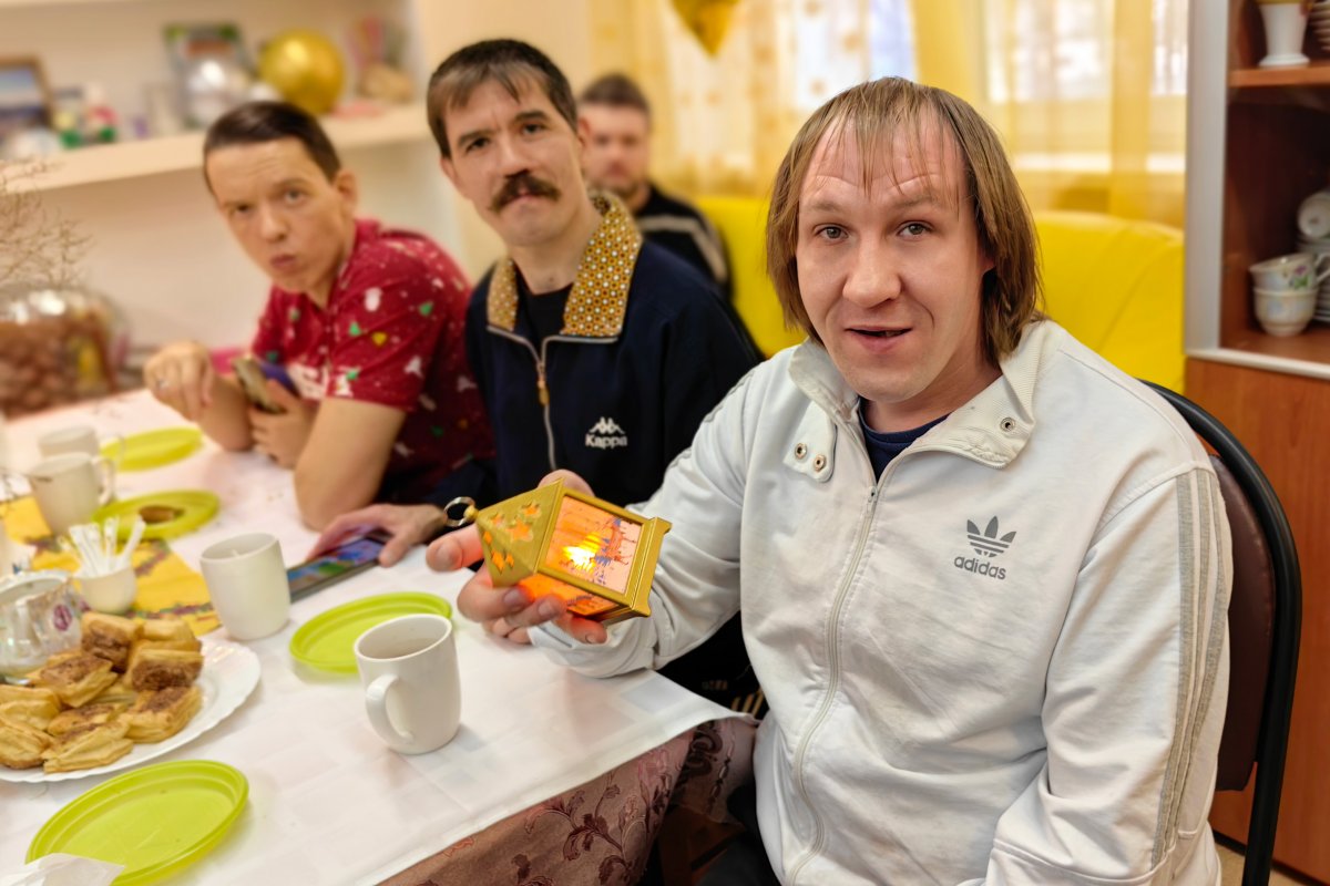 В неформальной обстановке участники делились успехами прошедшего года, рассказывали о своём опыте работы в рамках проекта «Право на обычную жизнь: содействие занятости людей, проживающих в домах-интернатах и геронтопсихиатрических центрах Московского региона», обсуждали достижения и личные победы. Особое место в разговоре заняли планы на 2026 год — каждый мог озвучить свои цели, мечты и ожидания, а также услышать поддержку и добрые слова от окружающих.