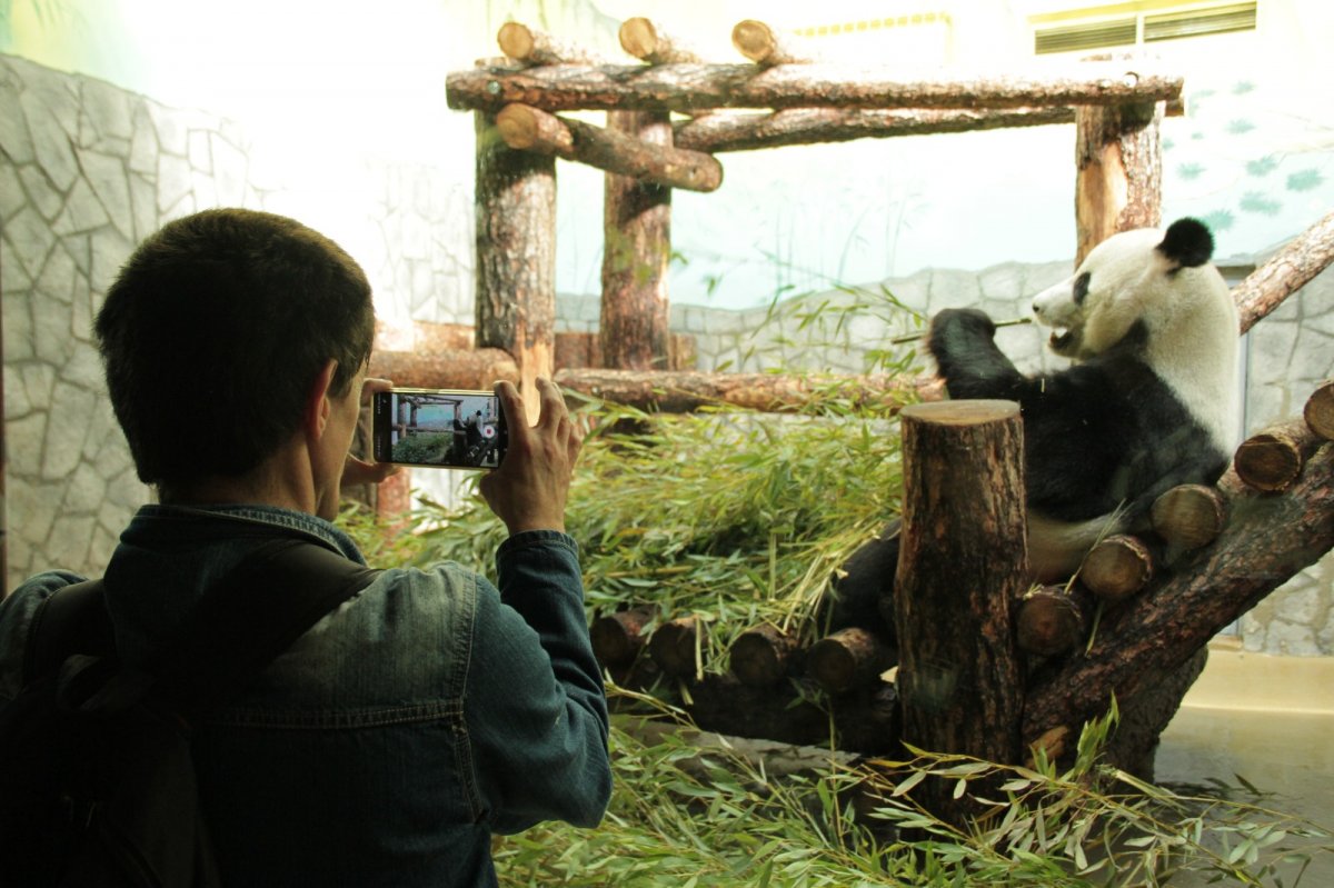 После занятий ребята отправились на экскурсию по зоопарку. Первым делом навестили панду Катюшу, которая родилась здесь два года назад и уже как совсем большая содержится в отдельном вольере.