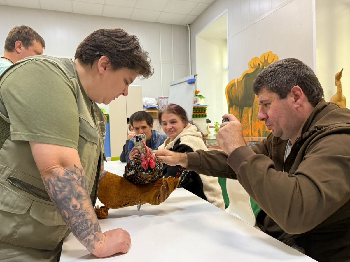 Натуралистам также разрешили потрогать зверюшек, они гладили карликового петуха, декоративную крысу, держали в руках сухопутную черепаху.