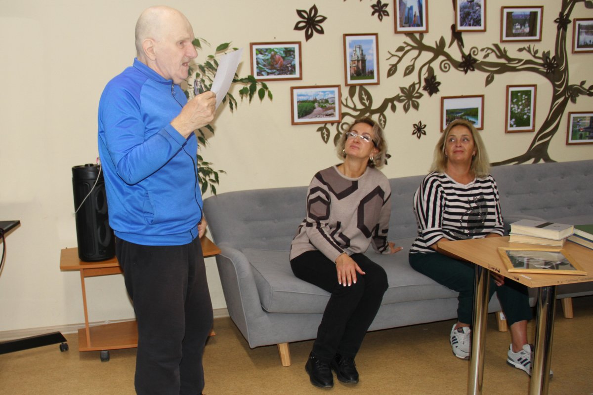 В нашем социальном доме прошёл поэтический салон, посвящённый 130-летию со дня рождения Сергея Есенина. Атмосфера встречи напоминала уютную старинную гостиную: на столе мерцала лампа с абажуром, рядом лежали томики стихов любимого поэта, а букет из ярких осенних хризантем создавал особое настроение — тёплое, душевное, есенинское.