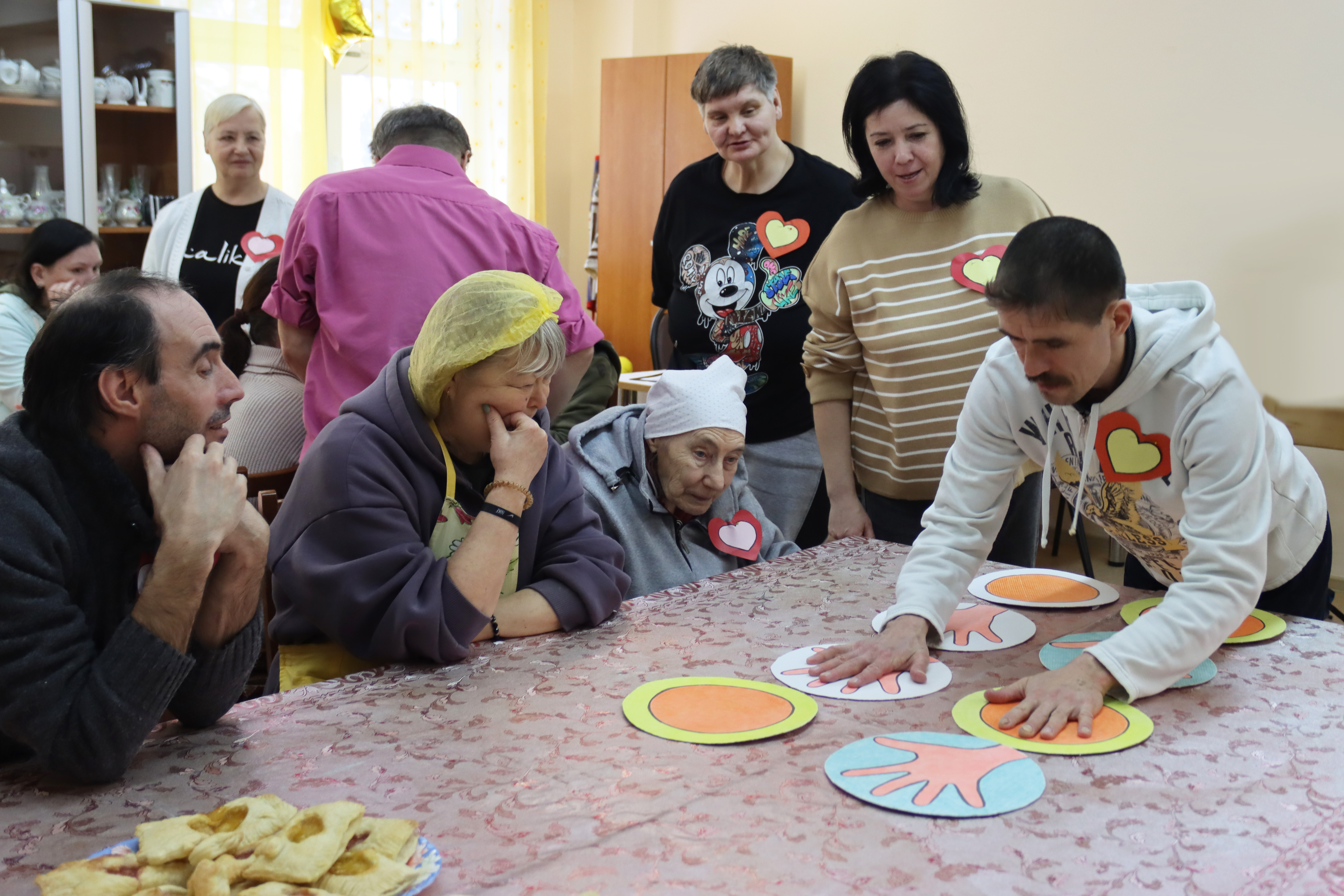 Тёплое настроение поддержали игровые задания и творческие активности. Жители дома учились говорить комплименты, а также участвовали в конкурсах, направленных на развитие коммуникативных, когнитивных и сенсомоторных навыков.