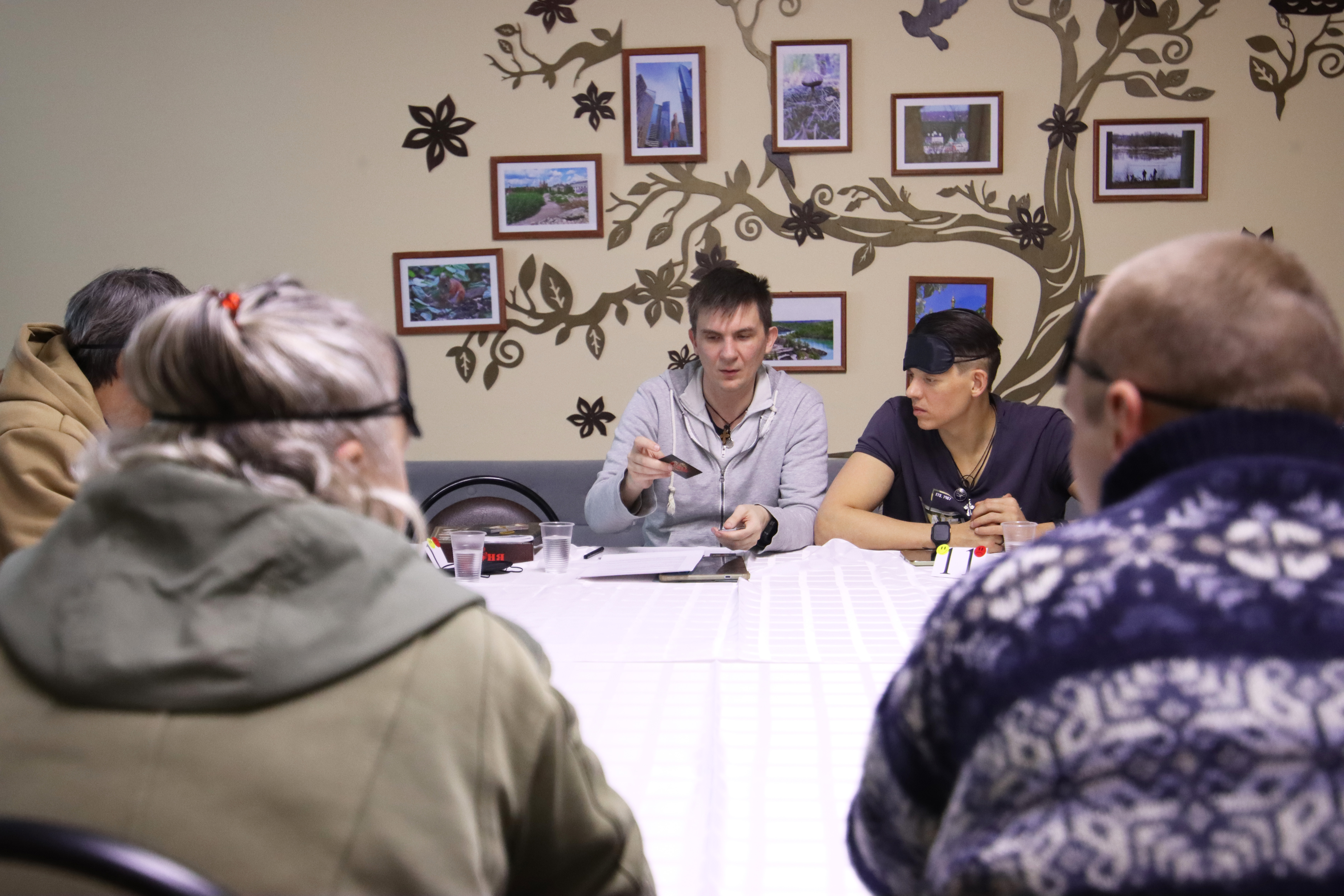Идею проводить такие встречи предложил участник Совета проживающих Вадим Вяткин. Он же стал ведущим: подготовил карточки, музыку, объяснил правила и задал атмосферу. Столы сдвинули в круг, приглушили свет — и обычный вечер превратился в детективную историю.