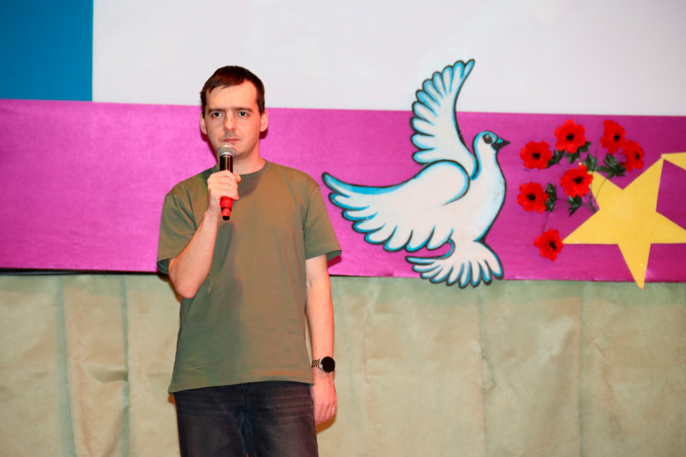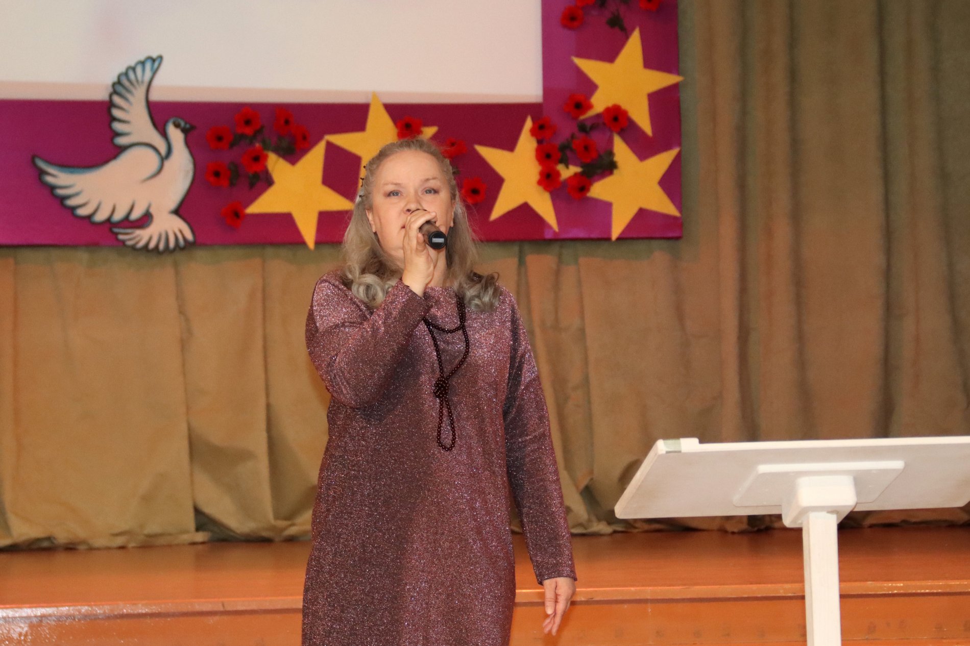 Перед зрителями выступили участники проекта «С песней по жизни». В их исполнении прозвучали известные патриотические композиции, которые зал встречал тёплыми аплодисментами. Искренность и душевность выступлений создали по-настоящему праздничное настроение.