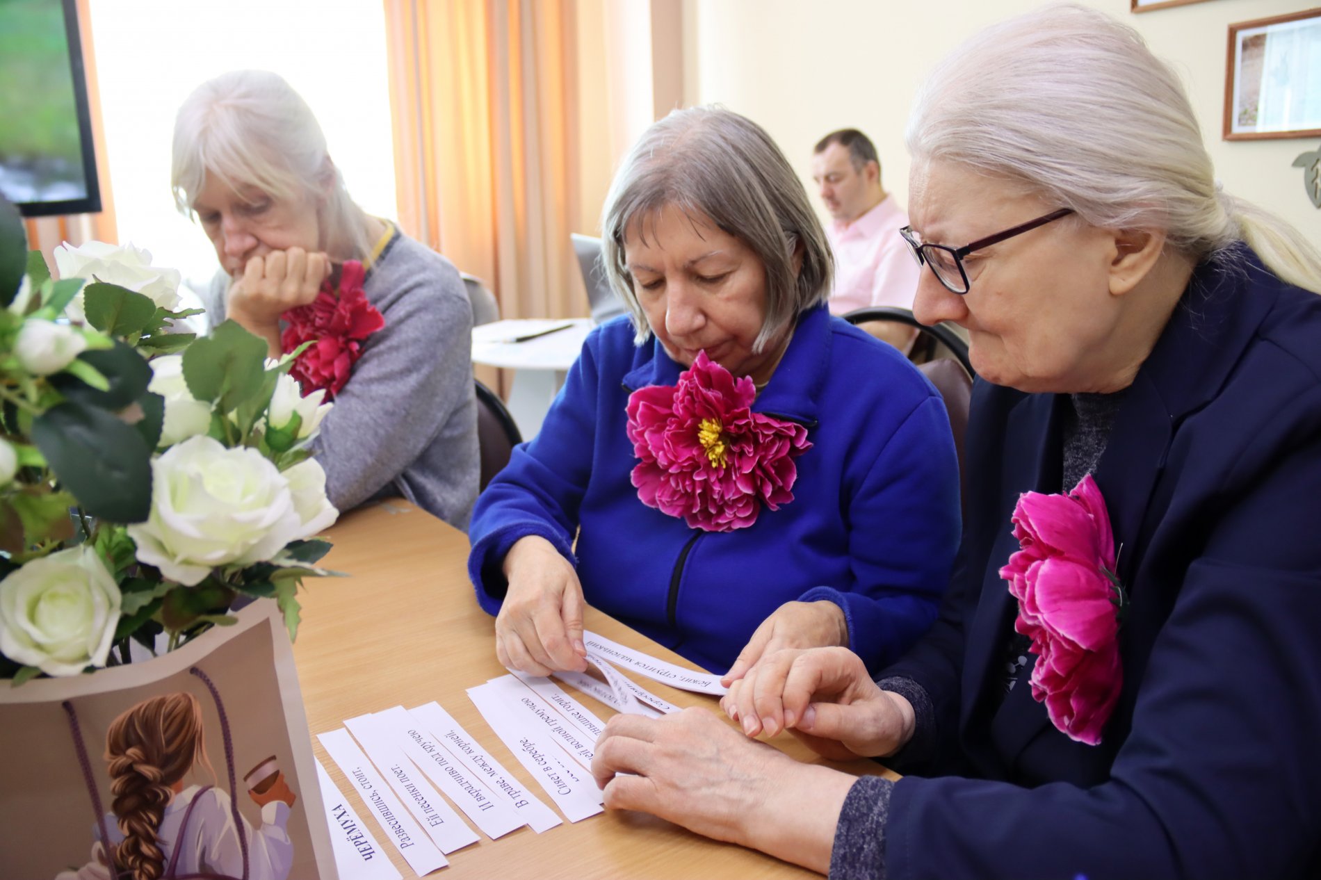 Пока команды были заняты заданиями, ведущая Татьяна Попкова вовлекала зрителей в нейробику. Такие упражнения отлично помогают поддерживать пожилым жителям внимание, развивать память и создавали живую, непринуждённую атмосферу в зале.
